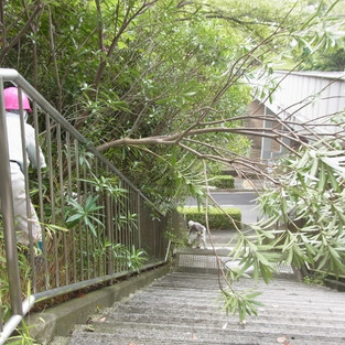 バス通り側の階段脇のキョウチクトウが伸びているので剪定。
